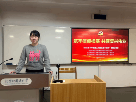 本科生党支部预备党员王心洁表示,通过学校下半年的第二次集体学习,深入理解了中国式现代化的伟大与必然。中国式现代化道路打破了“现代化=西方化”的迷思,以人口规模巨大、共同富裕等鲜明特质,创造了人类文明发展史上的奇迹。作为外语学子与青年党员,我们不仅是语言的学习者,更应成为沟通中外的桥梁、讲述中国故事的窗口,为增强中华文明传播力影响力贡献自己的一份力量。